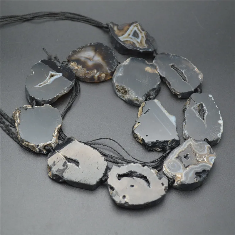 Goede Koop Zwart Grijs Drusy Steen Freeform Slab Slice Losse Kralen Fit Mode sieraden Maken Goedkoop