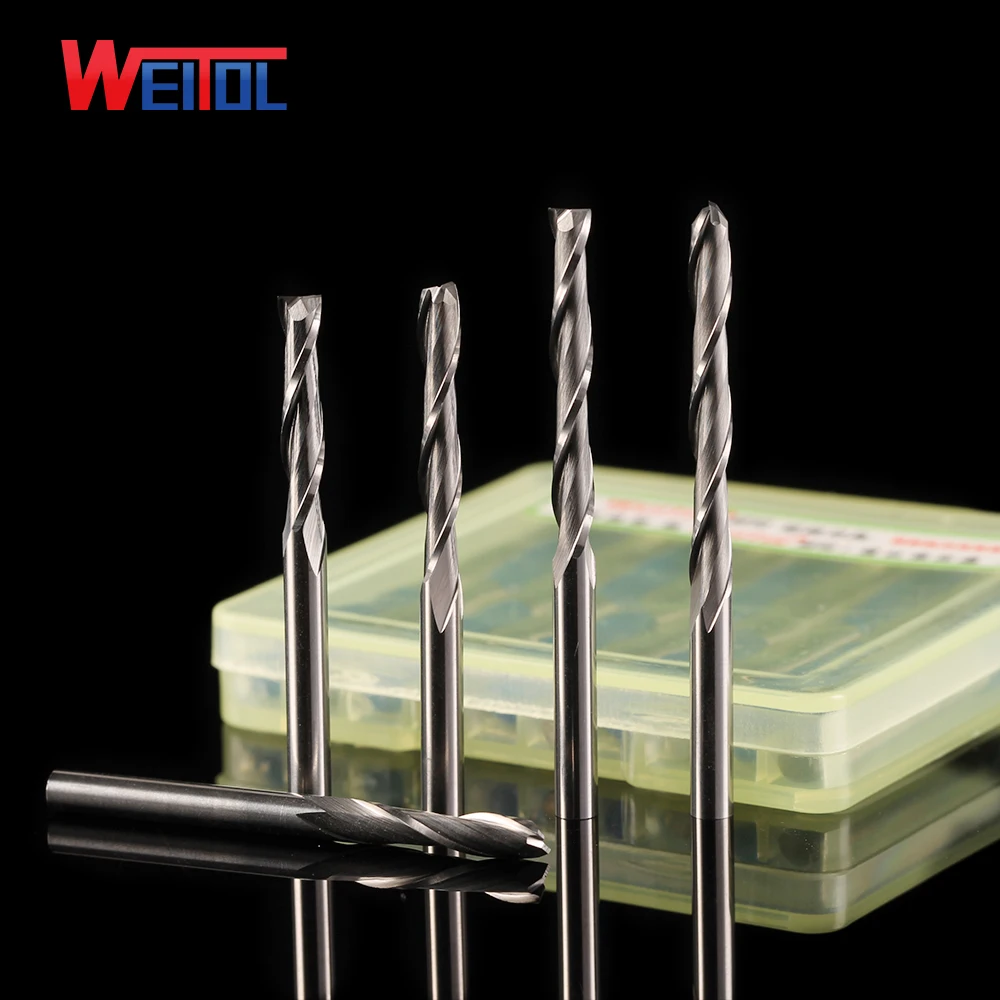 Kopen Goedkoop Weito gratis verzending 1 stks N 3.175mm twee fluiten spiraal bit 2 fluit frees cutter CNC graveermachine tool voor hout Online