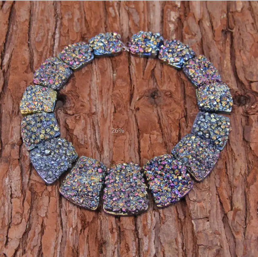 Goede Koop Regenboog Mystic Titanium Zee Sediment Stenen Slab Losse Kralen Ketting Set, Druzy Drusy Top Geboord Slice Charms Mode sieraden Goedkoop