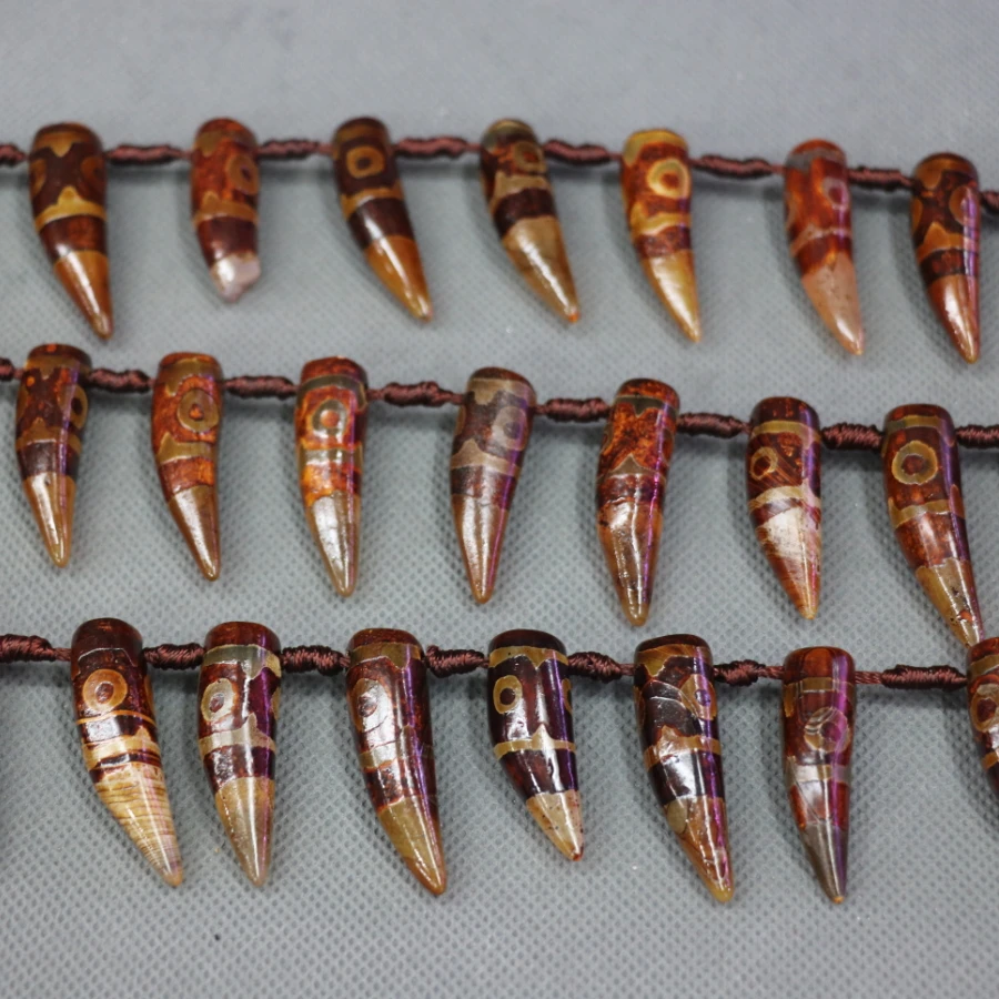 Kopen Goedkoop 2 strengen lot 15x25 m Bruin Tanden Tibetaanse Mystieke Steen Dzi Kettingen, tibetaanse Charms Slab Gems Stone Matte Turtleback Coin Kralen Prijs