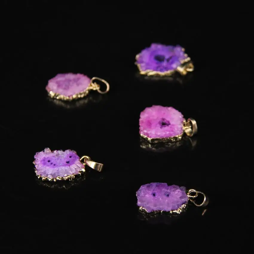 Kopen Goedkoop 5 stks partij, Paars Roze Titanium Kwartsplaatje Gold randen Hangers, Natuurlijke Druzy Agaat Geode Freeform Slice Nugget Hanger ketting Prijs