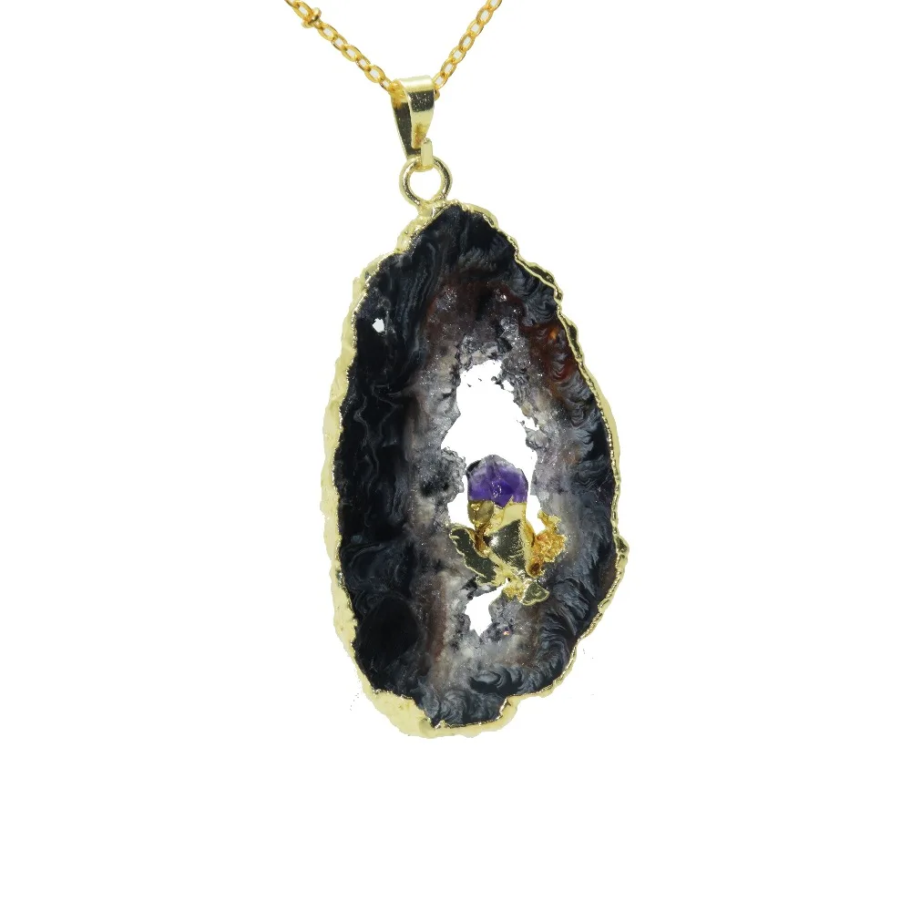 Ruwe Geode Hanger Polish Stone Slab Vrouwen Goedkoop