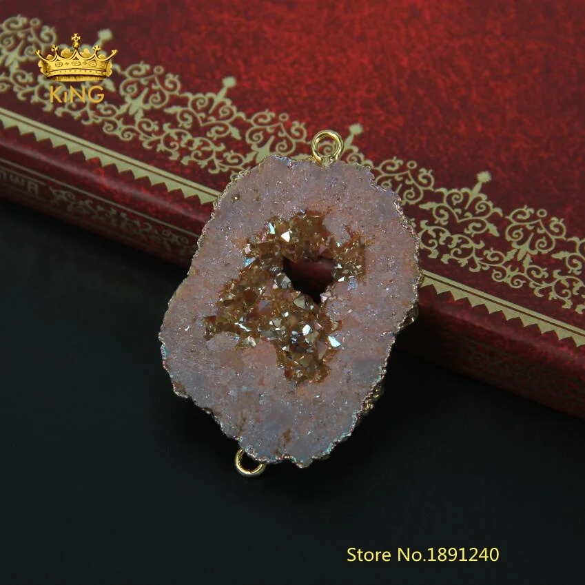 Kopen Goedkoop Champagne Geode Druzy Connector Gold Tone 6 7mm Thick quartz Slab Bezel Pendant Druzy Charm fit Bracelets Handmade Gifts GH003 Prijs