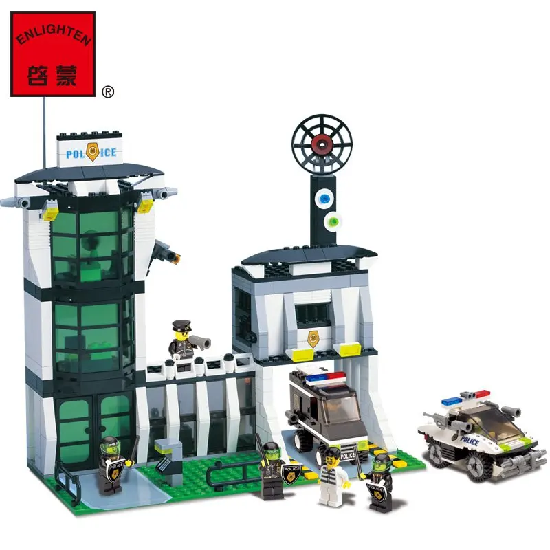 Goede Koop ENLIGHTEN Politie Series Headquater Stad Rel Track Voertuig Monteren Model Bouwstenen minifig Kids Educatief Kinderen Speelgoed Goedkoop