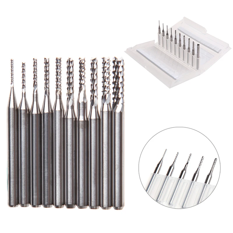 Kopen Goedkoop 10 Stks 1 8 #039; #039;0.8 3.175mm Boor Bits Graveren Cutter Rotary PCB CNC End Mill Set Prijs