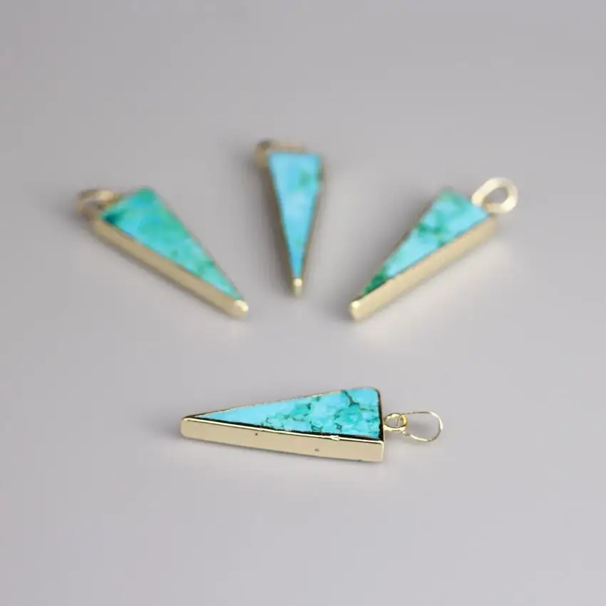 Kopen Goedkoop 5 stks partij Natuurlijke Turkooizen Driehoek Slice Gold Randen Hangers, Blauw Howliet Stone Gem Slab Hangers Bedels Sieraden Maken Prijs