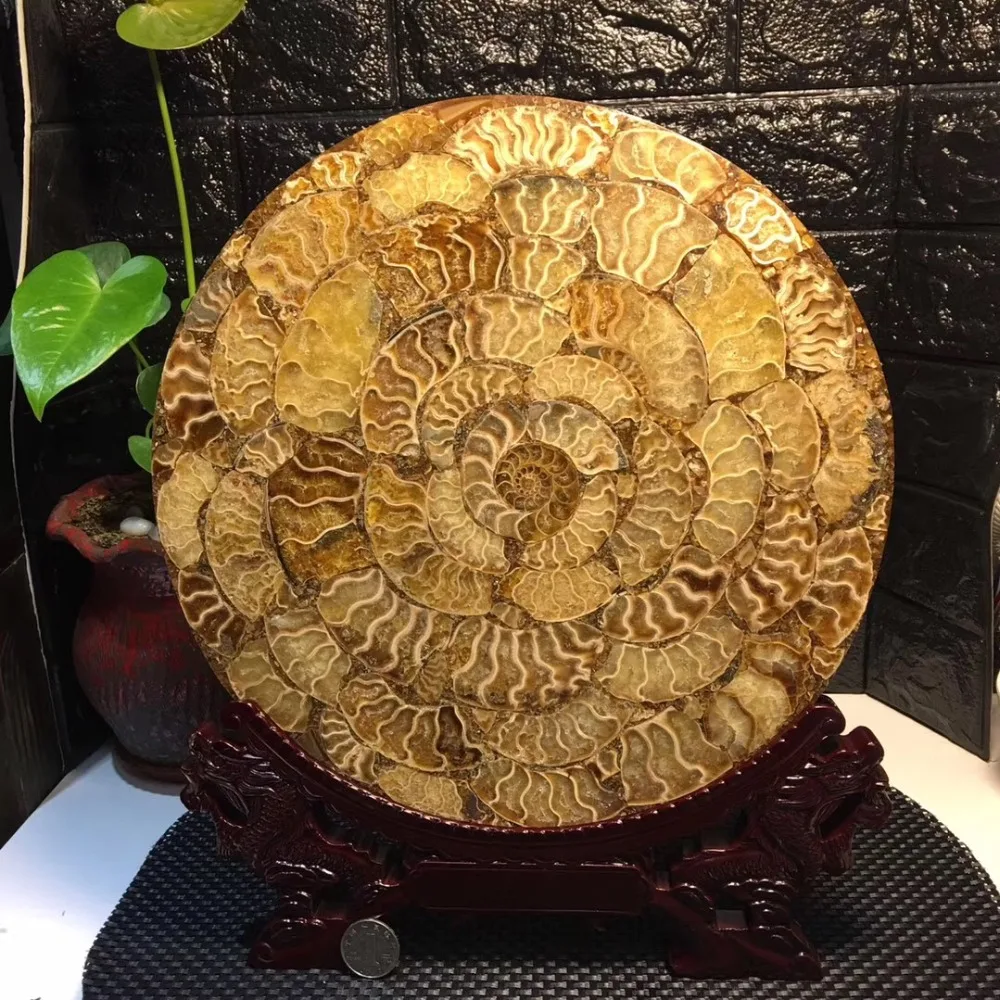 Beste Koop Natuurlijke Ammoniet Fossiele Ronde Plaat conch fossil platen ornament Goedkoop
