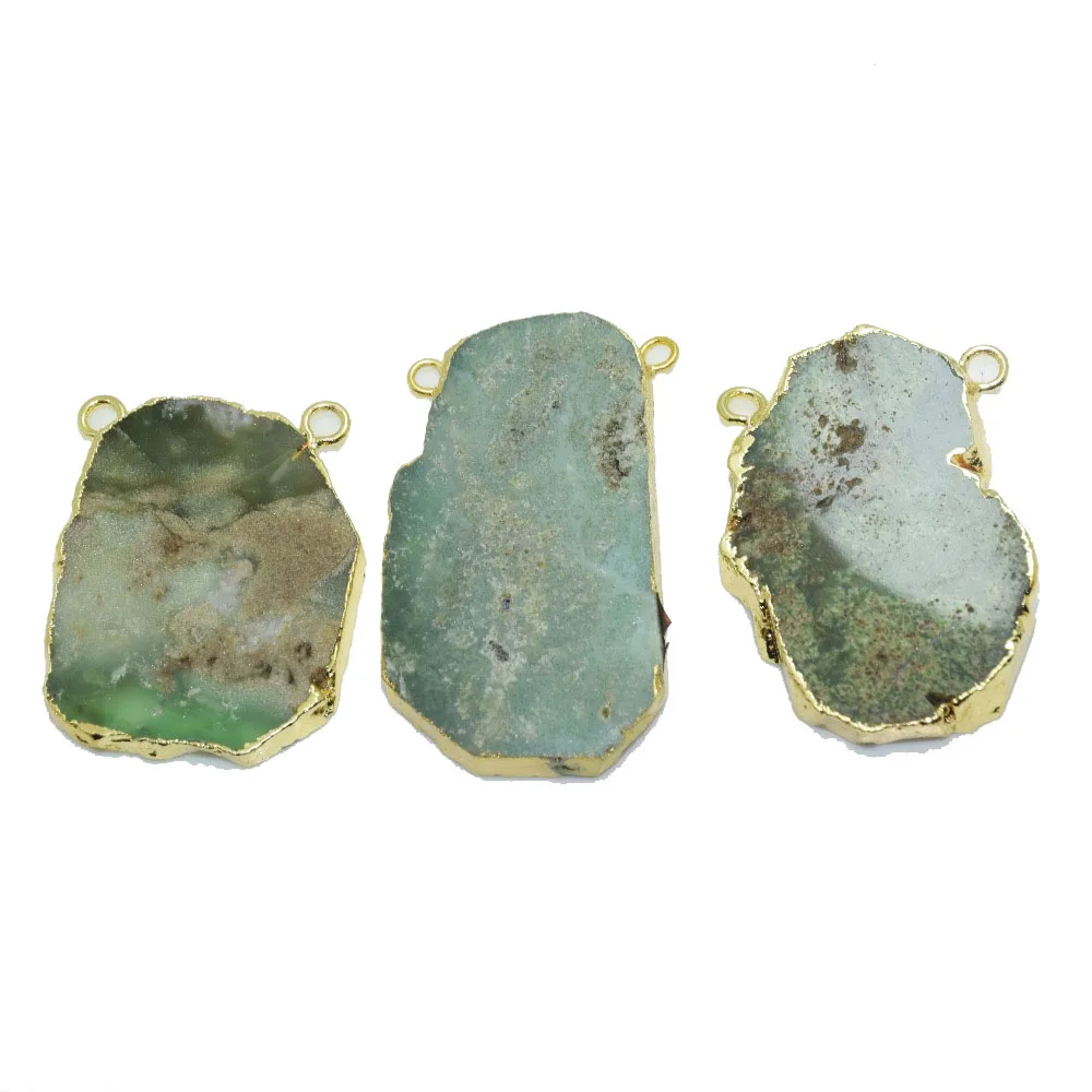 Steen Charme Hanger Voor Ketting Ruwe Chrysopraas Slab Connector Met