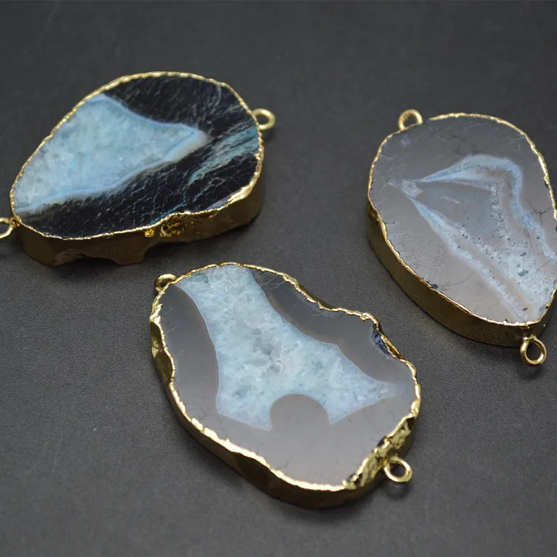 Kopen Goedkoop Twee Loops Freeform Quartz Black Stone Slice Slab Gold Plating Ketting Connectors Prijs