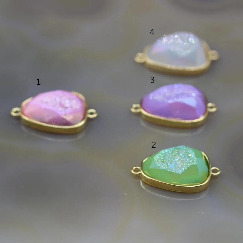 Goede Kopen 5 stks partij, Raw Druzy Geode Facet Platte Drop Shape Connectors Links Armband, agaat Drusy Slab Nugget Gouden Randen Hanger Charms Goedkoop.