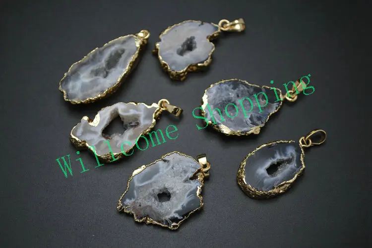 Kopen Goedkoop 1 st Geode Black Drusy Stone Slice Freeform Slab Hanger Fit Ketting Sieraden Handgemaakte Prijs