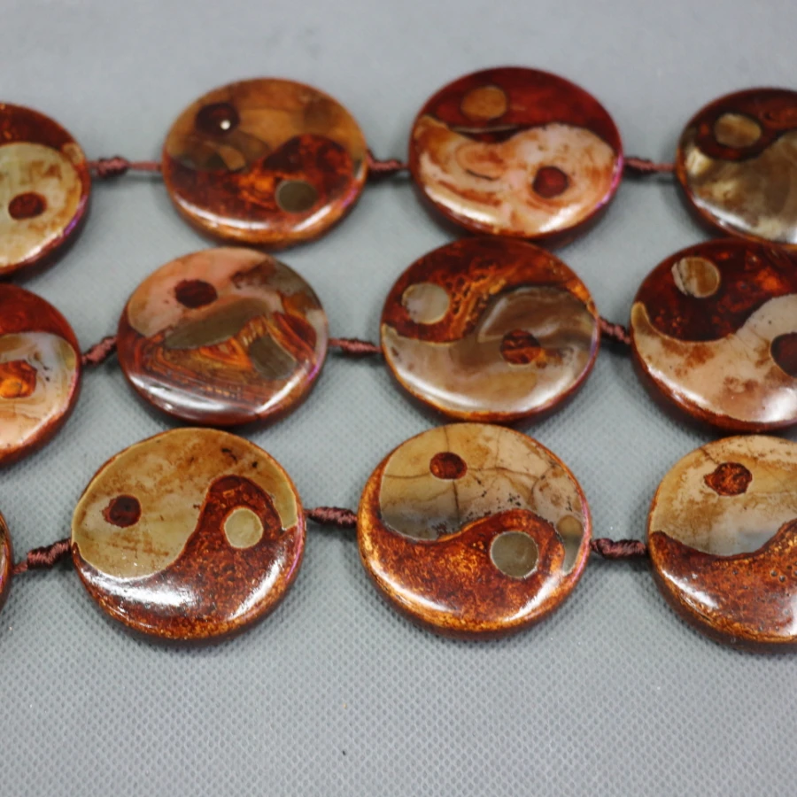 Beste Kopen 2 strengen lot 25mm Bruin Mala Tibetaanse Mystieke Steen Dzi Kettingen, tibetaanse Charms Slab Gems Stone Matte Turtleback Coin Kralen Goedkoop