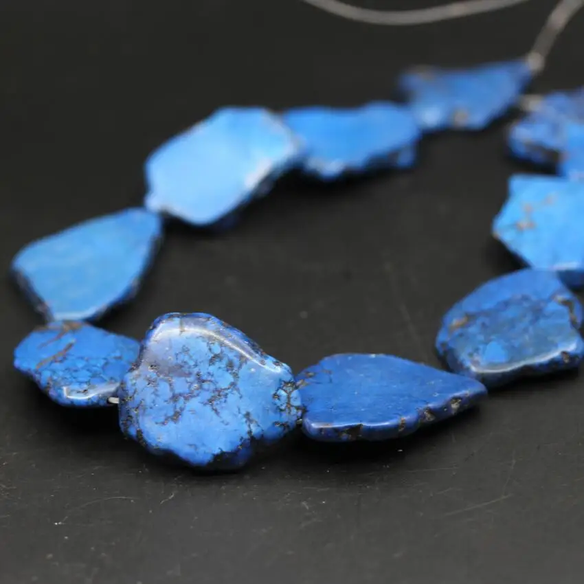 Beste Kopen 2 Strengen Veel Drak Blauw Ruwe Turkooizen Howliet Slab Slice Losse Kralen, Natuurlijke Magnesiet Stone Nugget Hangers Ketting sieraden Goedkoop.
