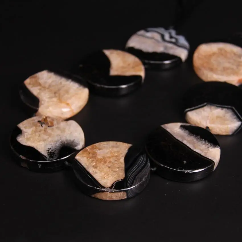 Beste Kopen Approx8PCS, Grote Maat Zwart Ruwe Agaat Drusy Geode Platte Ronde Slab Kralen, natuurlijke Onxy Druzy Slice Nugget Hangers Sieraden Maken Goedkoop.