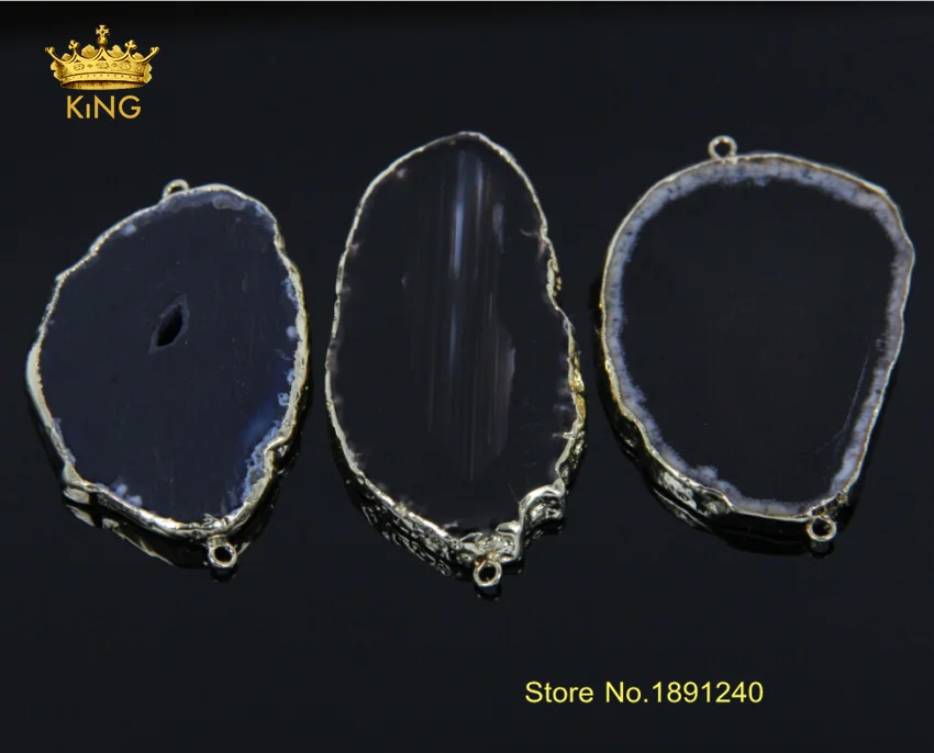 Beste Koop Fashion Druzy Large Black Onyx Connector Slice Stone,Black Slabs Gold Plating Edged Pendant Gem Stone Necklace For Making KC019 Goedkoop