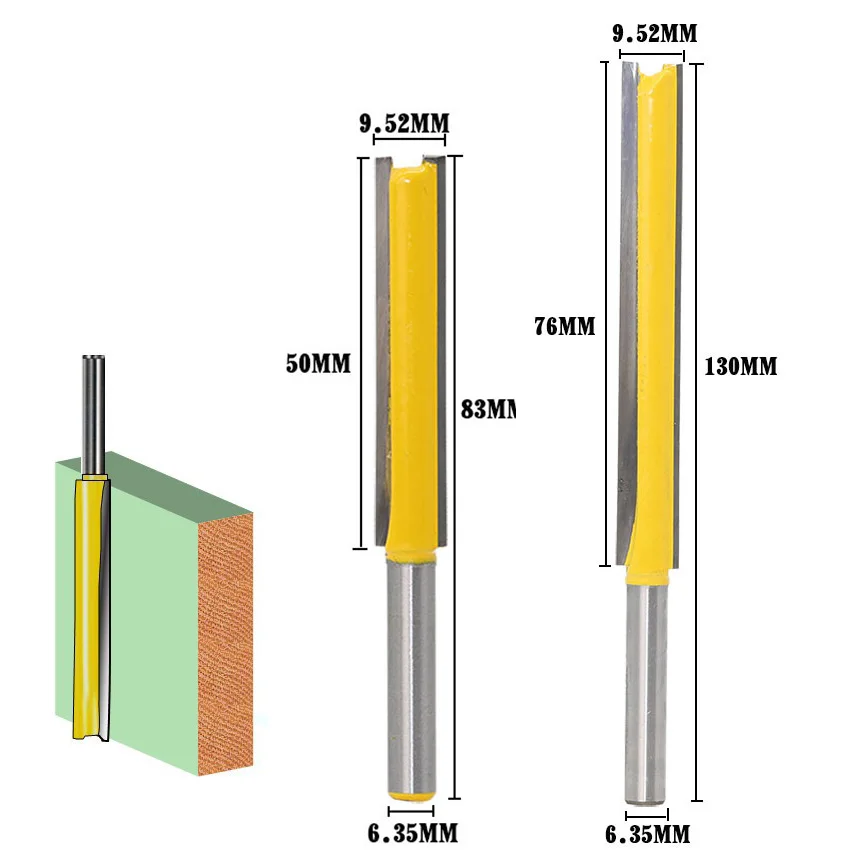 Beste Kopen Hoge kwaliteit 1 4 schacht verlengd Rechte Groef Tenon Frees Engravin Router Bits voor 6.35mm inch cutter tool 80830 Goedkoop