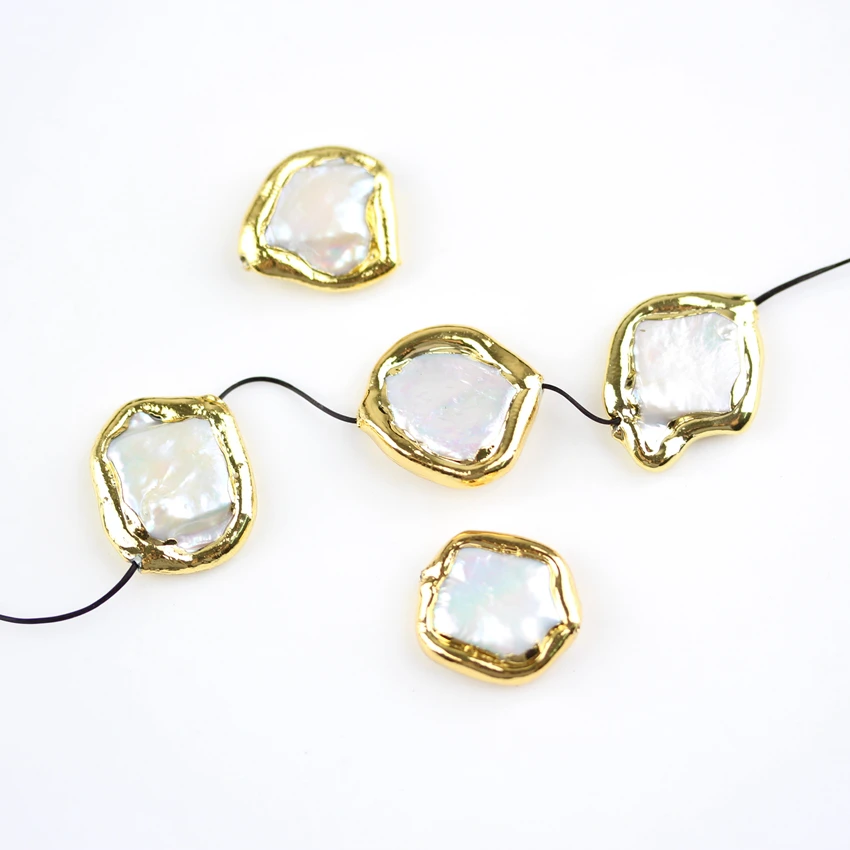 Kopen Goedkoop Groothandel Freeform Platen Vorm Sieraden, Witte Parel Shell met Gouden Vergulde Koperen Randen Charms Bevindingen voor Armband Ketting Online