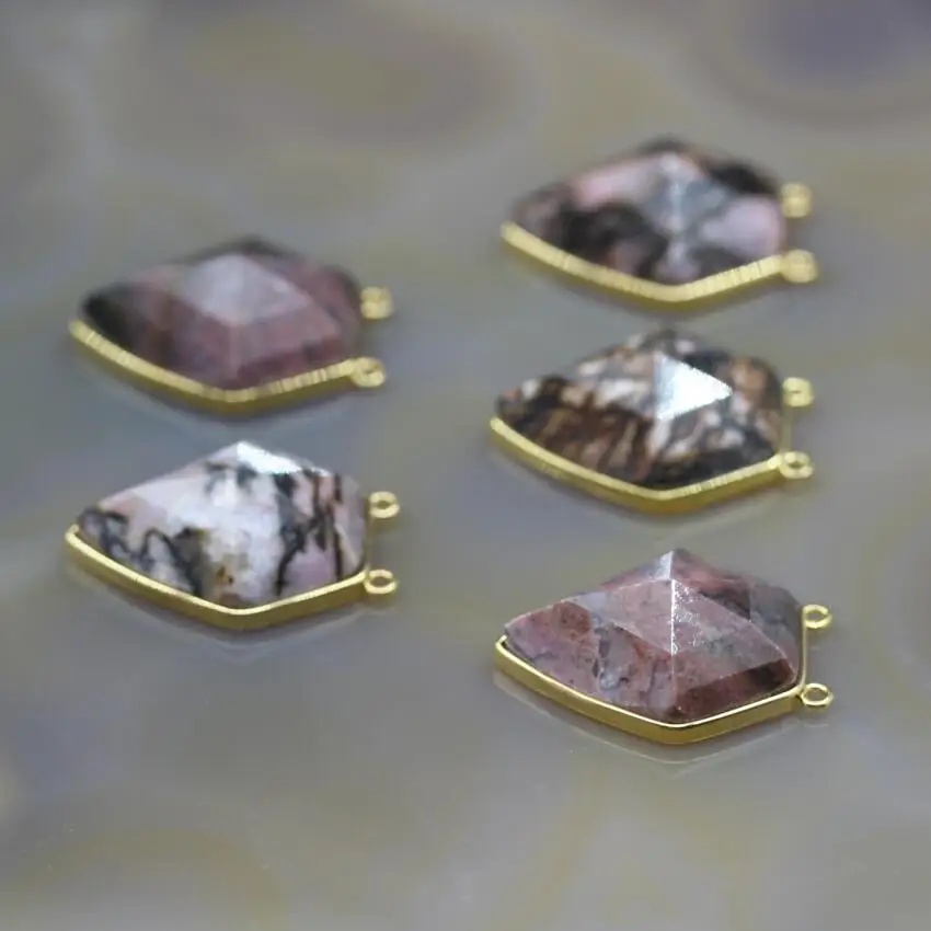Beste Kopen 5 stks partij, Facet Rhodoniet Pentagon Vorm Nugget Hanger Connectors, Natuursteen Gems Plaat Dubbele Links Charms, sieraden Maken Goedkoop
