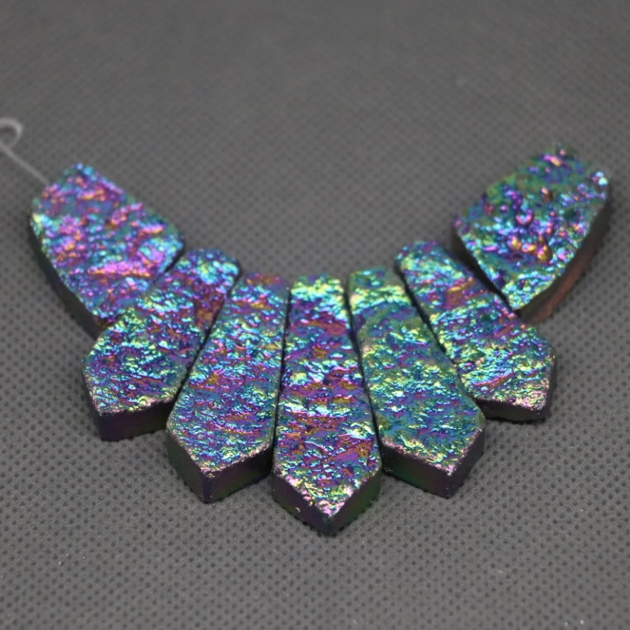 Beste Kopen 5 + 2 Nieuwe Electro Regenboog Oceaan Sediment Keizerlijke Stone Slice Kralen Top Geboord Slab Vorm Accessoires Sieraden Maken voor Womens Goedkoop
