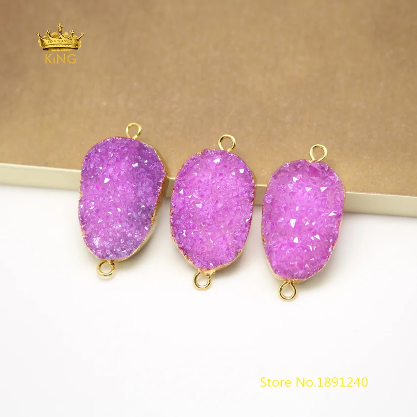 Beste Koop 10 stks Natuurlijke Druzy Drusy Slab Kralen Connectors voor Armband, Paars Quartz Crystal Plated Gold Borgtocht Charms Craft Ketting GH193 Goedkoop
