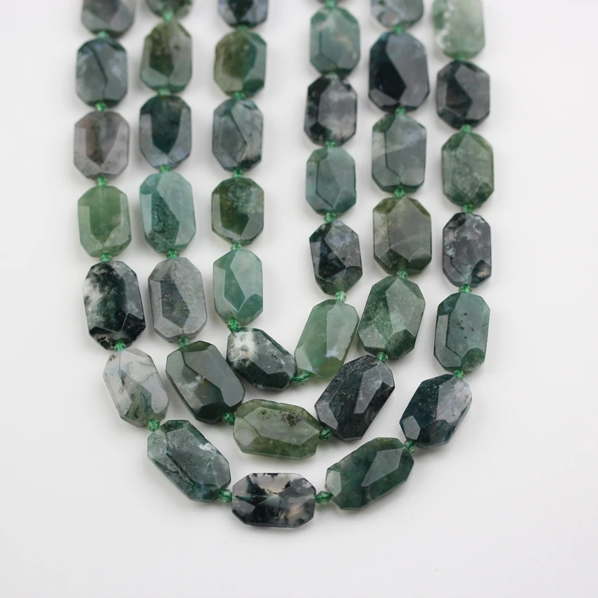 Goede Koop 15.5 Inches Streng Glad Natuurlijke Moss Agaten Kralen, Midden Geboord Bezuinigingen Ruwe Steen Octangle Platen Hanger Armband Sieraden Goedkoop