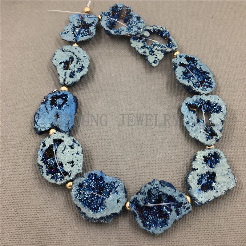 . Kopen Goedkoop Freeform Magic Blue Crystal Druzy Geode Quartz Titanium Slice Pendnat Kralen, 15.5 inch Volledige Strand Platte Slab Kralen MY1004 Online.