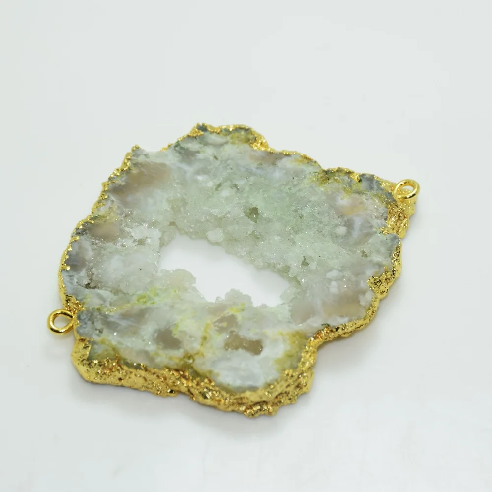 Goede Koop 5 stks Wit 2 loops Raw Crystal kwartsplaatje geode druzy hanger marmer natuurlijke slice quartz druzy connector met goud bezel Goedkoop.