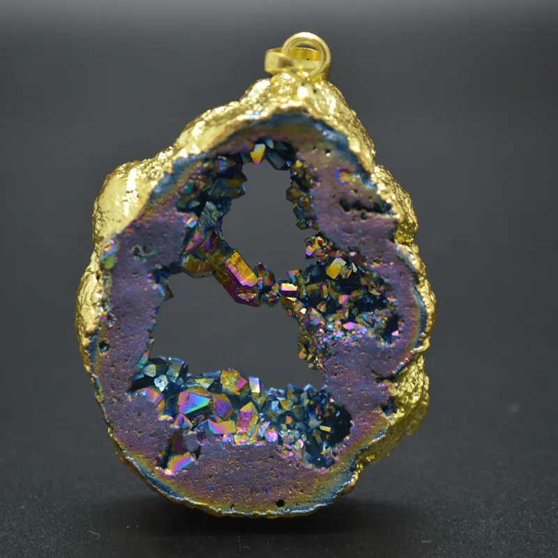 . Kopen Goedkoop Regenboog kleur titanium plating geode drusy slice freeform slab stone hanger fit mode sieraden ketting 5 stk partij Prijs.