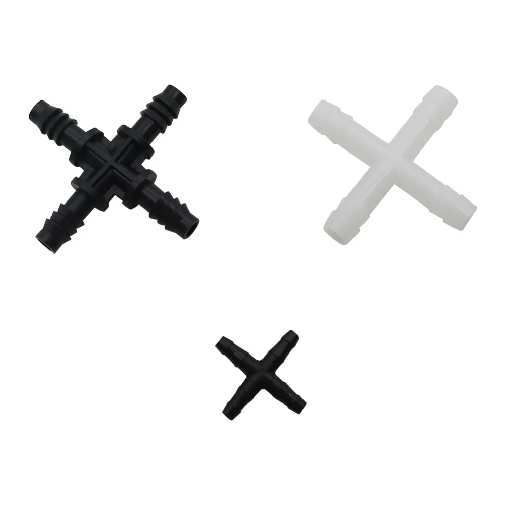 Goede Koop 4mm, 8mm, 10mm Prikkeldraad Cross connector Irrigatie Sanitair Buisleidingen Quick Connectors 4 manieren Slang Splitter Gezamenlijke 20 stks Goedkoop