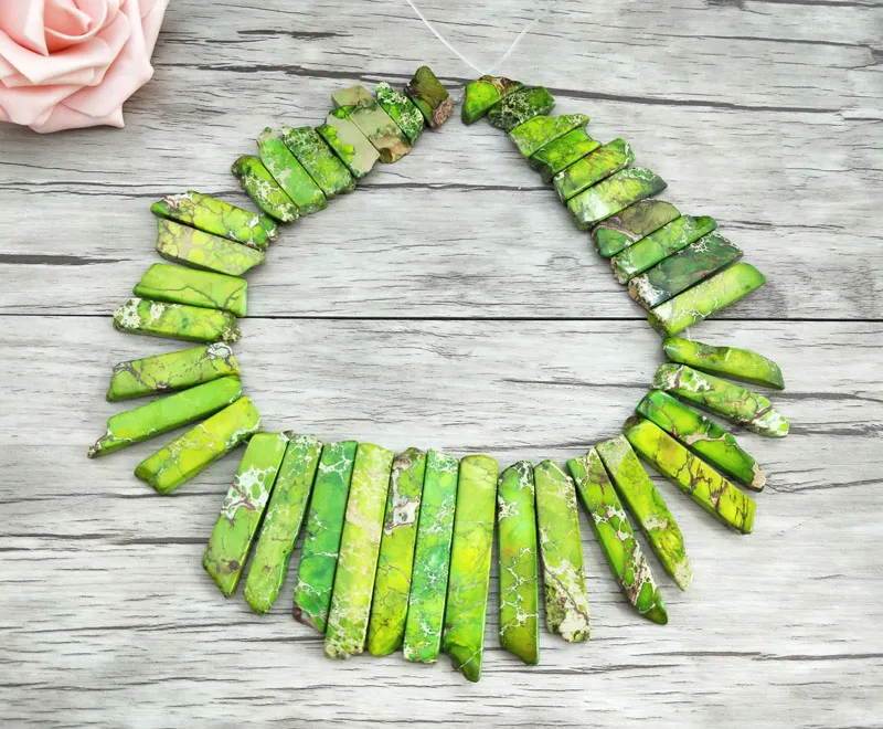 Goede Koop 3 strengen Natuurlijke Groene Keizerlijke steen Hanger, Slab Nugget Geboord Losse Kralen Bevindingen DIY Sieraden ketting maken PD936 Goedkoop