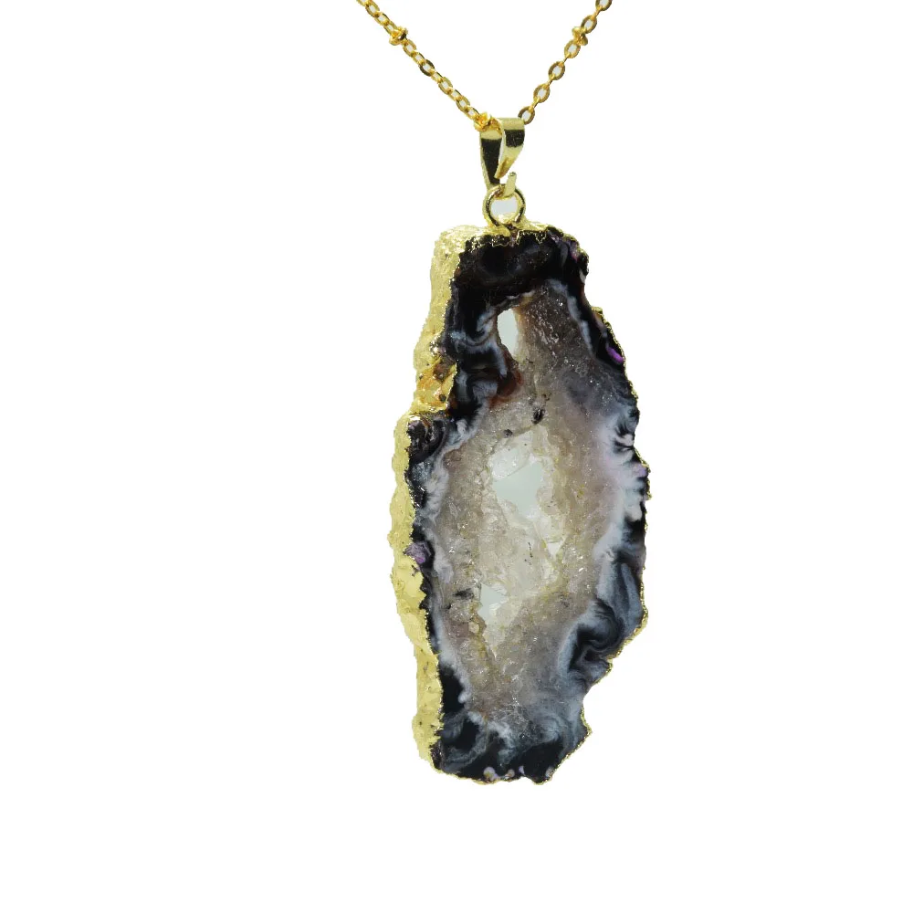 . Goede Koop 1 st Willekeurige Gold Bezel crystal quartz druzy hanger vrouwen ketting polish slab natuurlijke ruwe geode druzy steen ketting voor meisje Goedkoop.