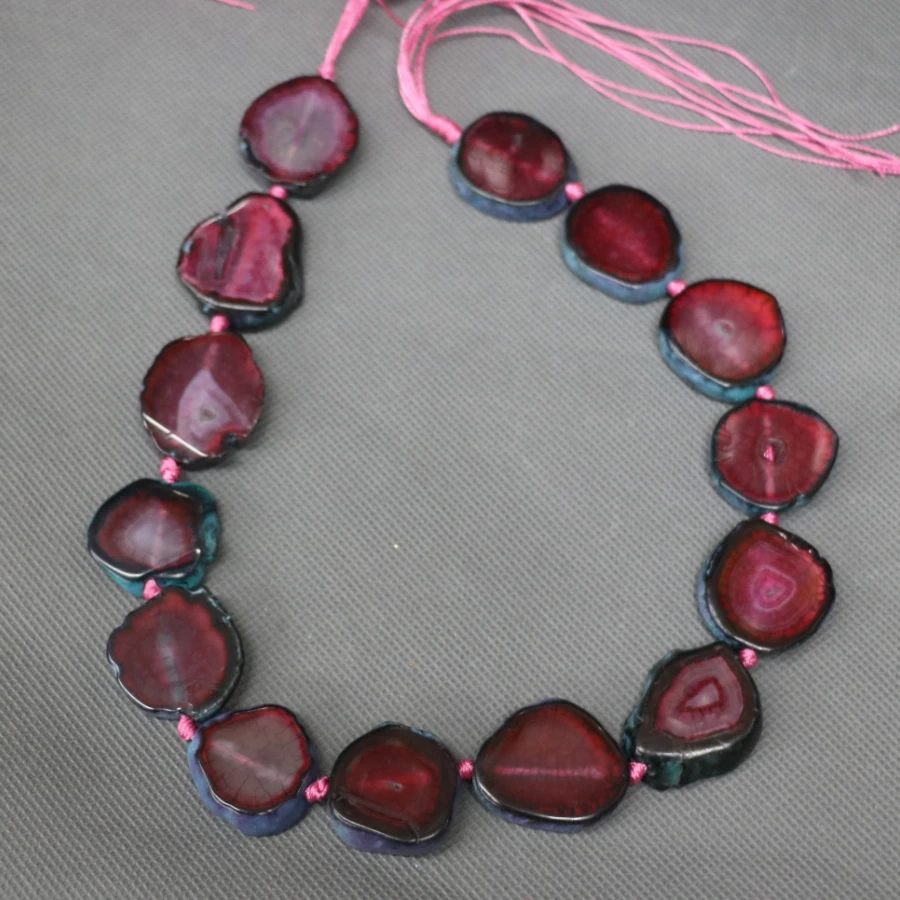 Goede Kopen 14 stks strand 1 volledige Rode Druzy Slab Slice Ketting Kralen, facet DIY Gems Steen Connector, kralen Hanger 15.5 inch Full Strand Goedkoop