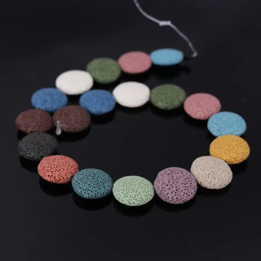 Beste Koop 3 Strengen lot 20mm Kleurrijke Natuurlijke Lava Platte Ronde Slab Coin Bead Charms, MultiColor Lava Rock Disc Heishi Kralen Sieraden Ketting Goedkoop.