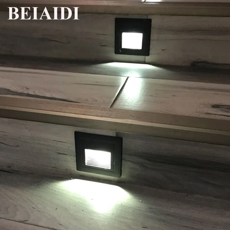Kopen Goedkoop BEIAIDI 1 w 3 w Outdoor Led Stap Licht IP65 Aluminium Ingebed Trap Hoek Lamp Waterdichte Verzonken Muur Trap Lamp footlight Online