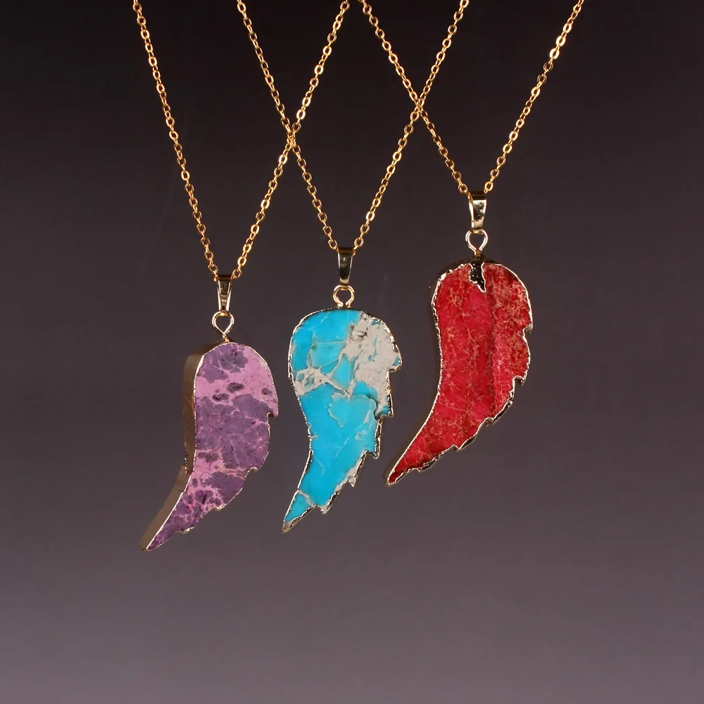 Kopen Goedkoop Zeven chakra Nieuwe Collectie Mode Vorm Kleuren Natuurlijke Druzy Slab Hanger Wing Vorm Regalite Gems Druzy Hanger Ketting Online