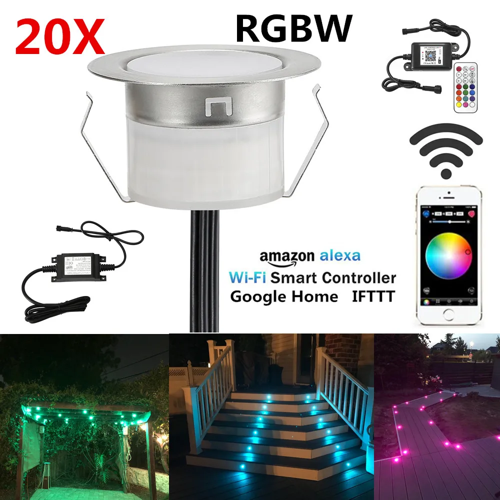 Kopen Goedkoop 20 stks partij RGBW RGB amp; Warm Wit Terras Soffit LED Dek Rail Trap Verlichting Waterdicht Smart WIFI Controller voor Alexa google Thuis Prijs