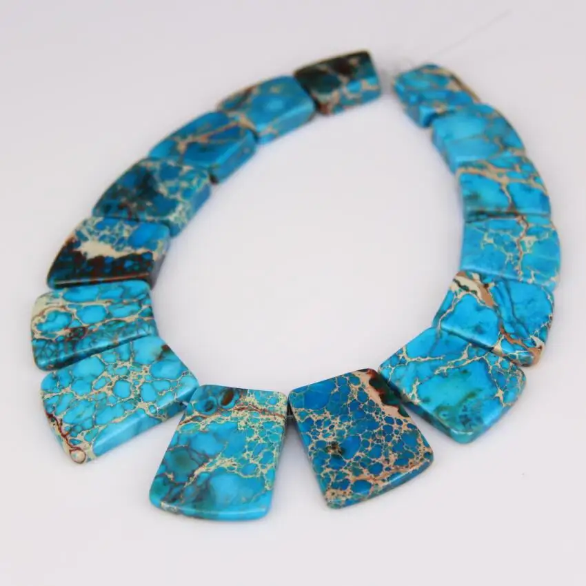 Goede Kopen 15 stks str Grote Blauw Zee Sediment Stenen Afgestudeerd Platte Vierkante Set Hangers, Geverfd Keizer Gems Losse Kralen Slab Craft Ketting Goedkoop
