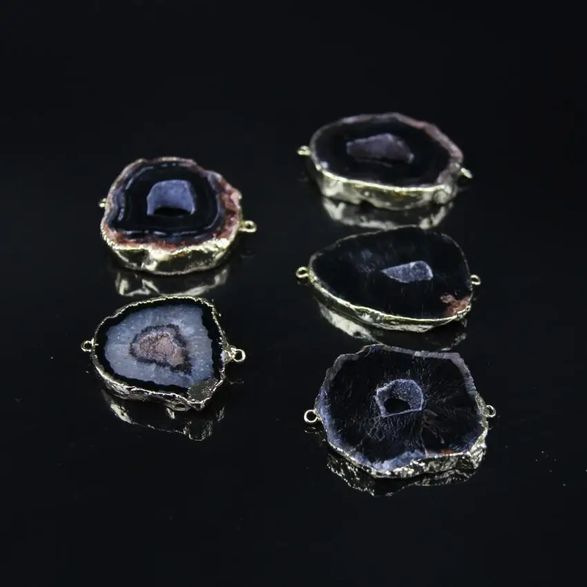 Beste Koop 5 stks partij, Blauw Zwart Drusy Agaten geode Freeform Slab Connector, Raw Druzy geode Slice Nugget Gold rand Hanger kettingen maken Goedkoop
