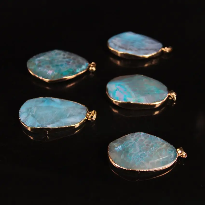 Beste Koop 5 stks partij, Natuurlijke Dragon Veins Agaten Facet Slab Hanger, Gold randen met Blue Druzy Agaten cut Slice Hanger ketting Ambachten Goedkoop