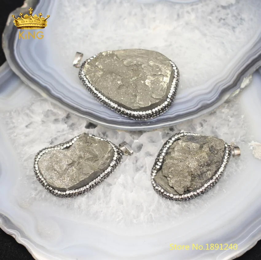 . Kopen Goedkoop 5 stks Rock Pyriet Hangers, Grote Natuurlijke Stenen Pyriet Pave Strass Charms Freeform Slab Kralen Pendentifs voor Ketting YT20 Online.