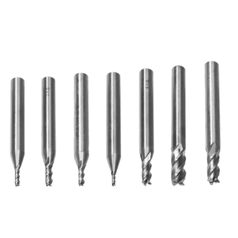 Beste Kopen 7 stks set Hardmetalen Frees HSS 4 Blades Fluiten Rechte Schacht Frees Rechte Schacht CNC Gereedschap Goedkoop