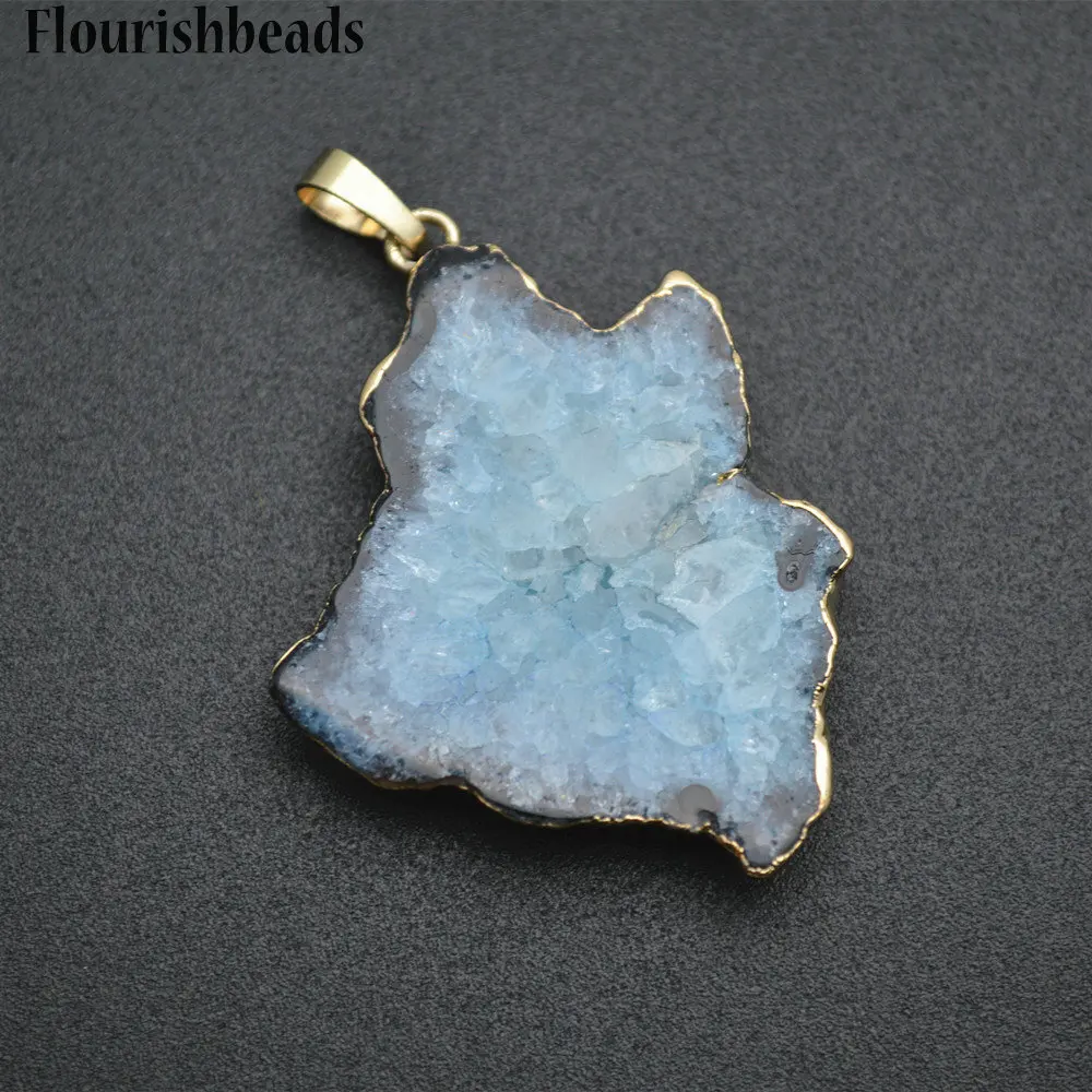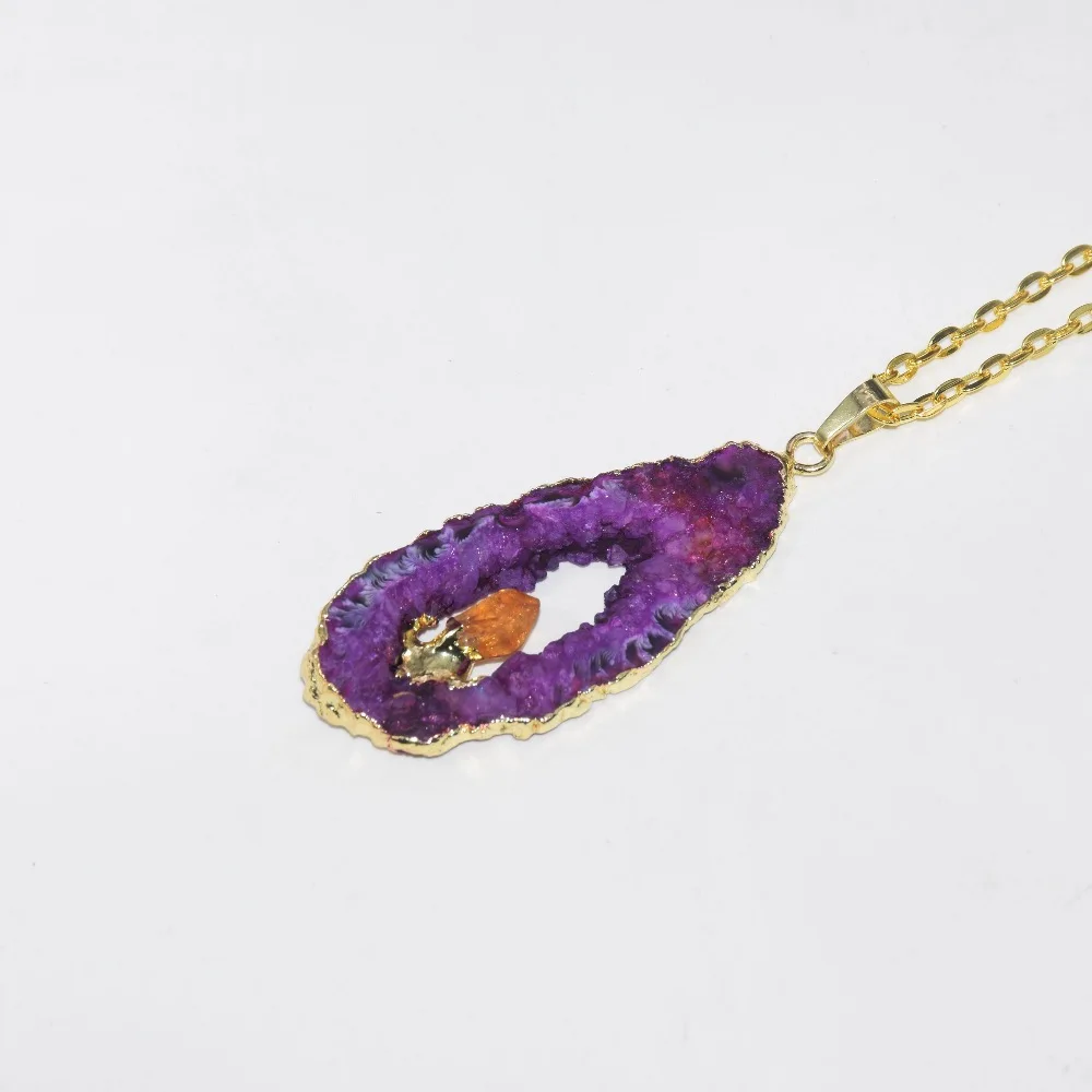 Beste Kopen Gratis Verzending Mode sieraden Natuurlijke Slice geode druzy hanger collier roze grote lange stone slab choker ketting vrouwen Goedkoop.