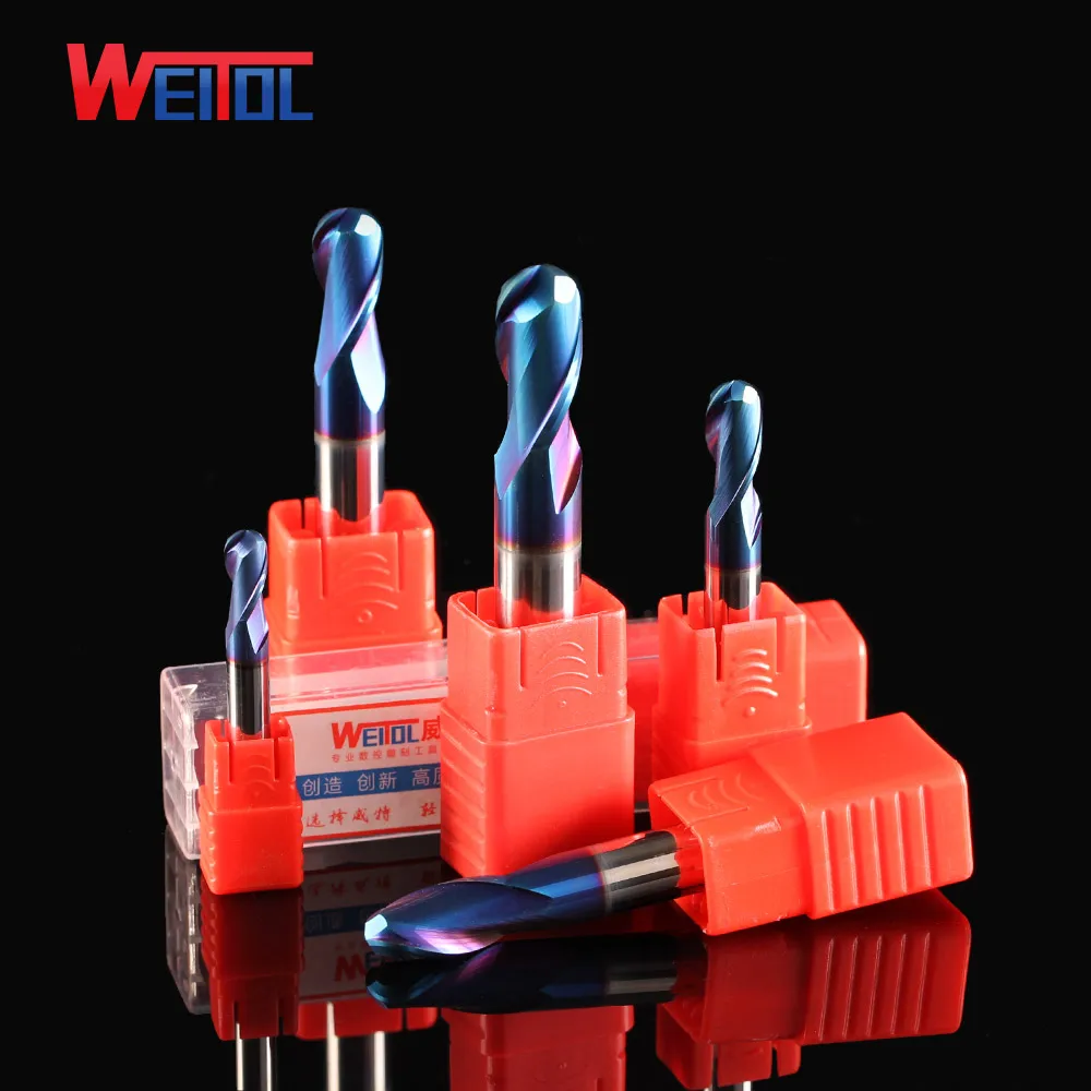 . Goede Koop Weitol 2 stks set 1mm 12mm Diameter blauw blade een tweesnijdend kogeleindfrees Gesneden metalen wolframstaal bit, hoge sterkte Goedkoop.
