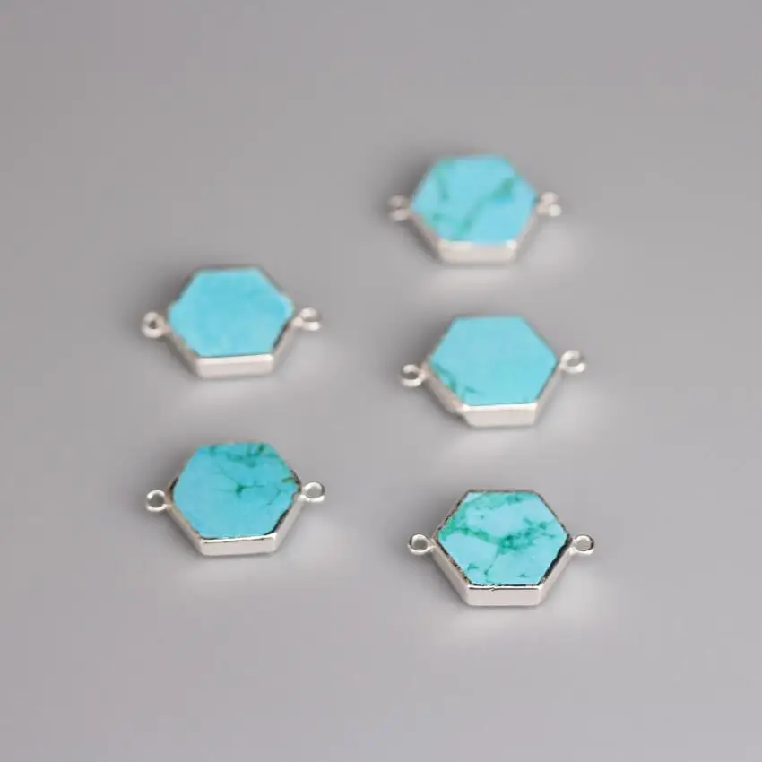 Beste Koop 5 stks partij, Verzilverd Hexagon Slab Connectors, Ruwe Turkooizen Hangers, Blauw Howliet Slice Nugget Charms Ketting Sieraden Goedkoop.