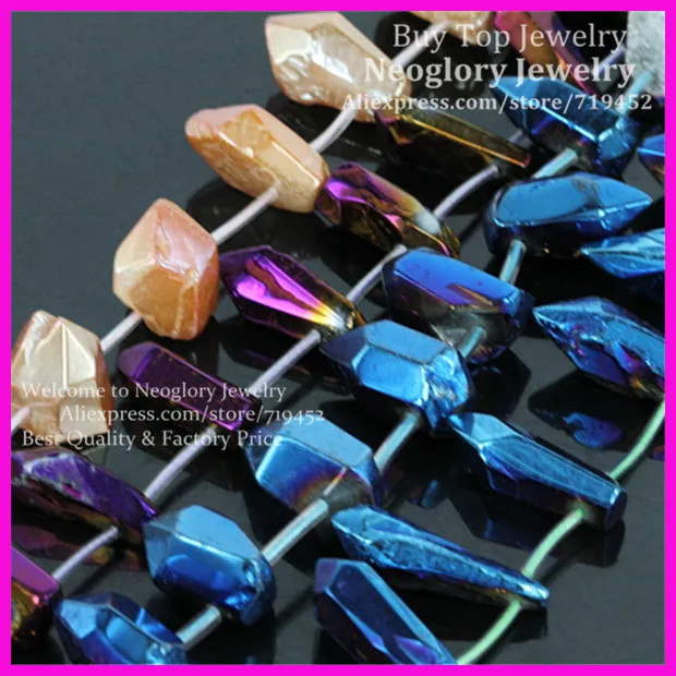 Goede Kopen Gepolijst Titanium Quartz Cut Nugget Punten Kralen, blauw Paars Oranje Quartz Kristallen Glas Stok Geboord Slab Kralen Hangers Goedkoop