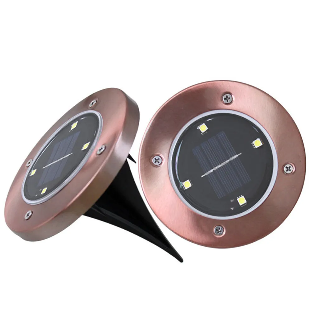 Beste Kopen 4 Leds Solartuinlamp bronskleur Draadloze IP65 Waterdicht Gazon lamp voor Pathway, Trappen, landschap Outdoor Wit licht 6000 k Goedkoop.