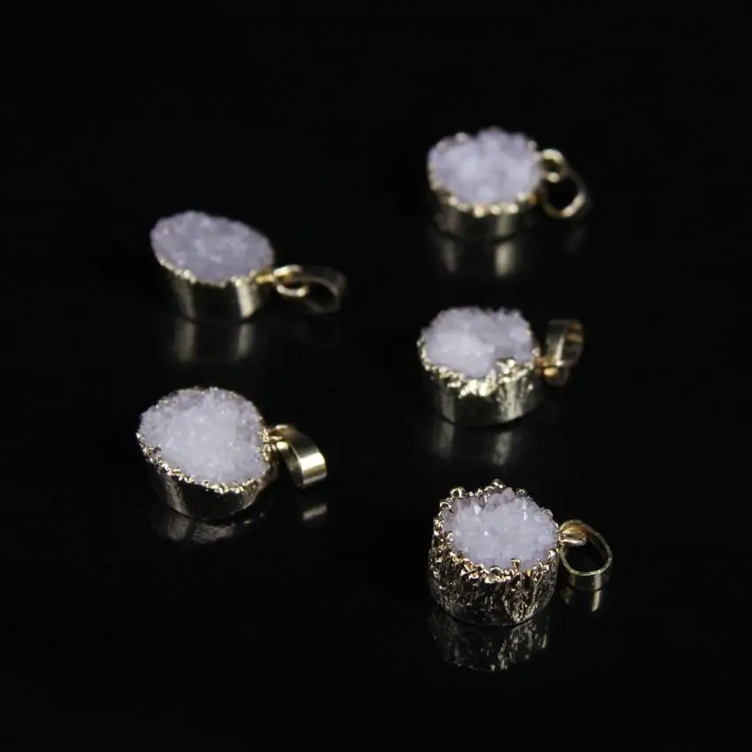 Goede Koop 5 stks, Natuurlijke Quartz Druzy Geode Ronde Slab Nugget Hanger, Ruwe Witte Agaten gems kralen Slice Hanger met Gold randen Goedkoop