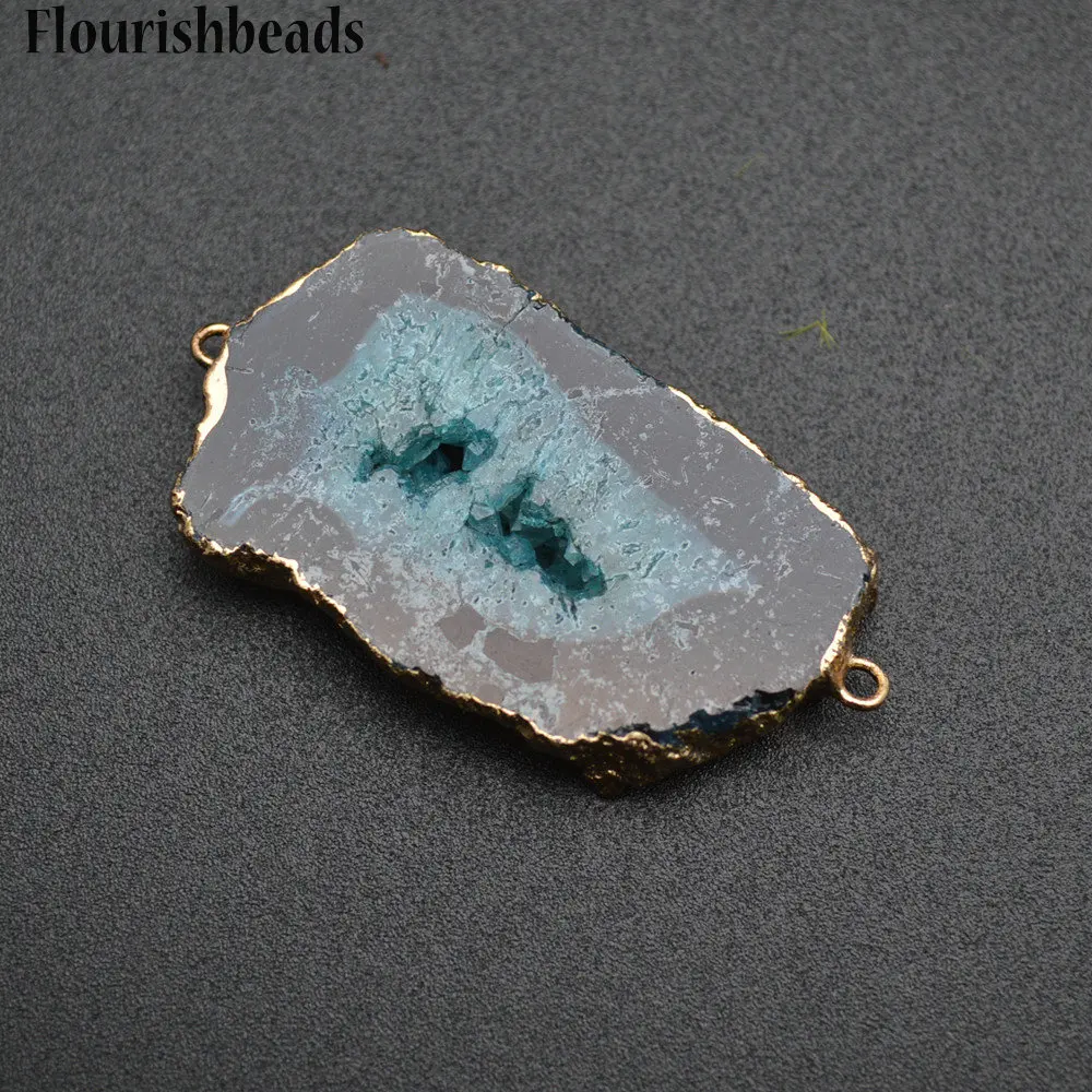 Kopen Goedkoop Blauw Kleur Drusy Freeform Geode Slice Stone Slab Hanger Twee Loops Sieraden Connectors 5 St Per Lot Prijs
