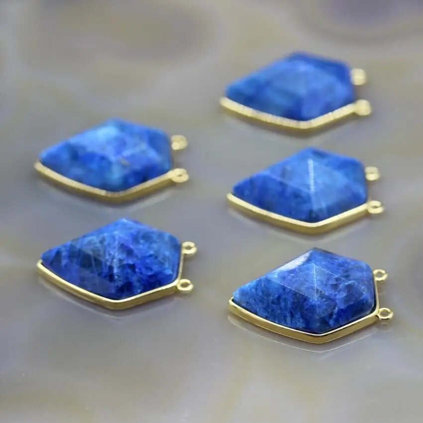 Beste Kopen 5 Stks partij, Blauw Sodaliet Stone Facet Pentagon Plaat Dubbele Borgtocht Connectors, Natuurlijke Edelstenen Nugget Hanger Charms, Sieraden Maken Goedkoop