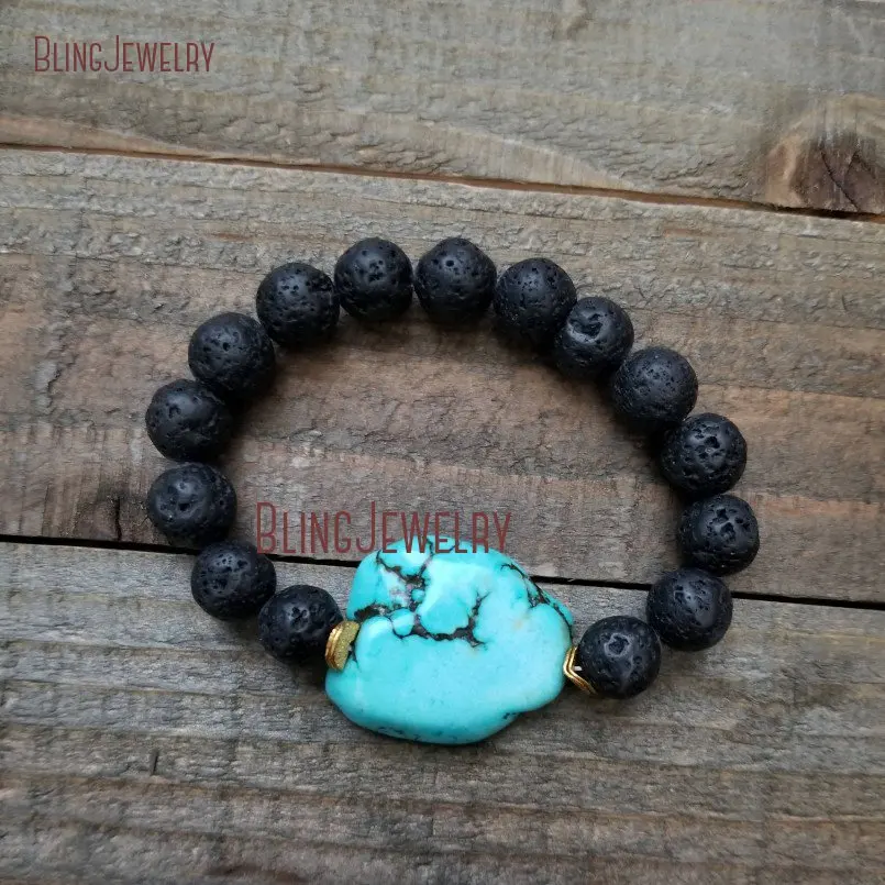 Goede Koop Turkooizen Slab Lava Armband Natuursteen Armband Boho Armband Zwarte Lava Turkooizen Armband BM10756 Goedkoop